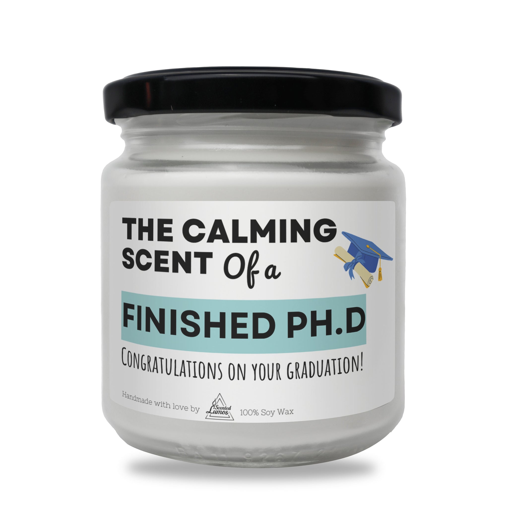 The calming scent of a finished Ph.D. Scented Soy Candle