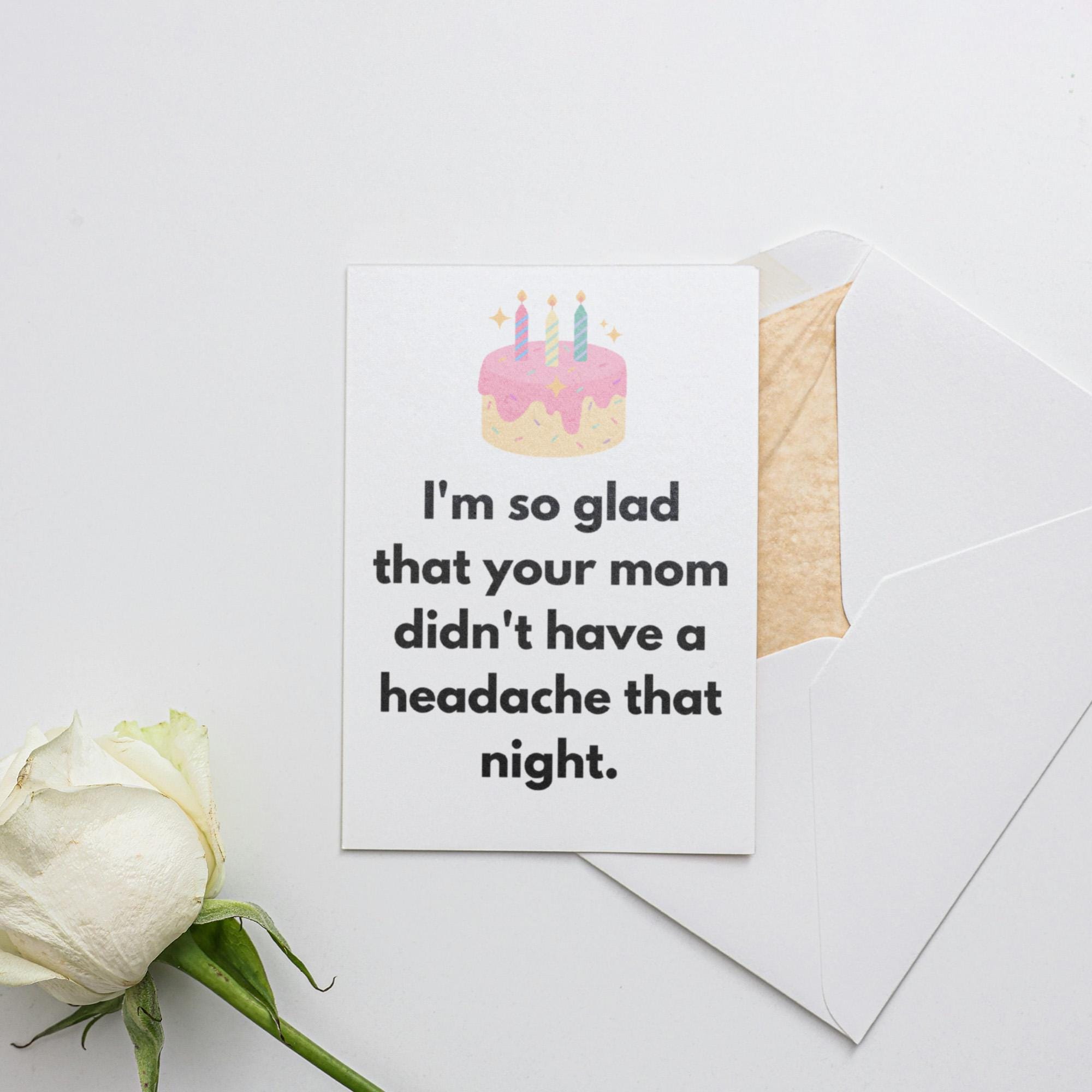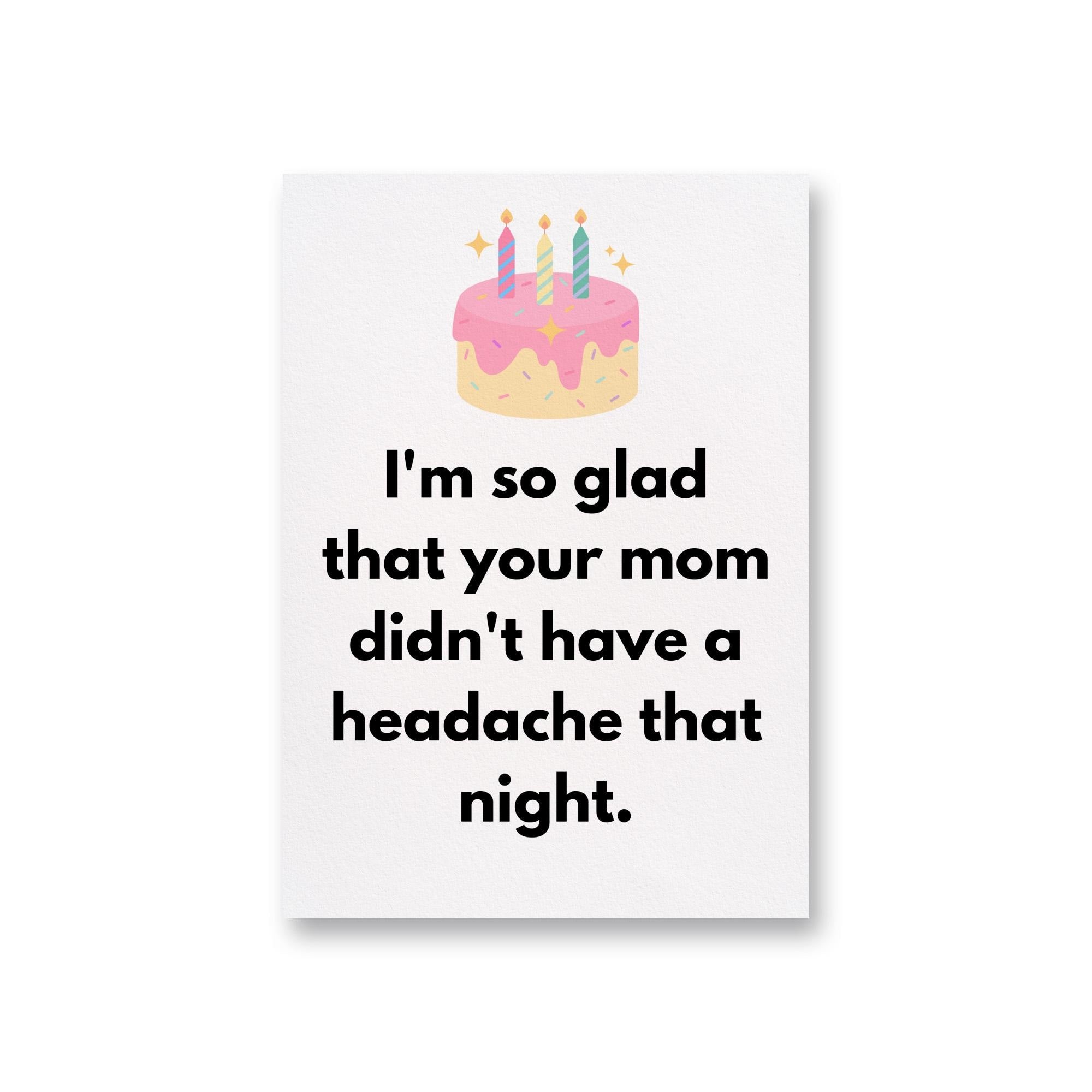 I'm so glad your mom didn't have a headache that night Card for Birthday