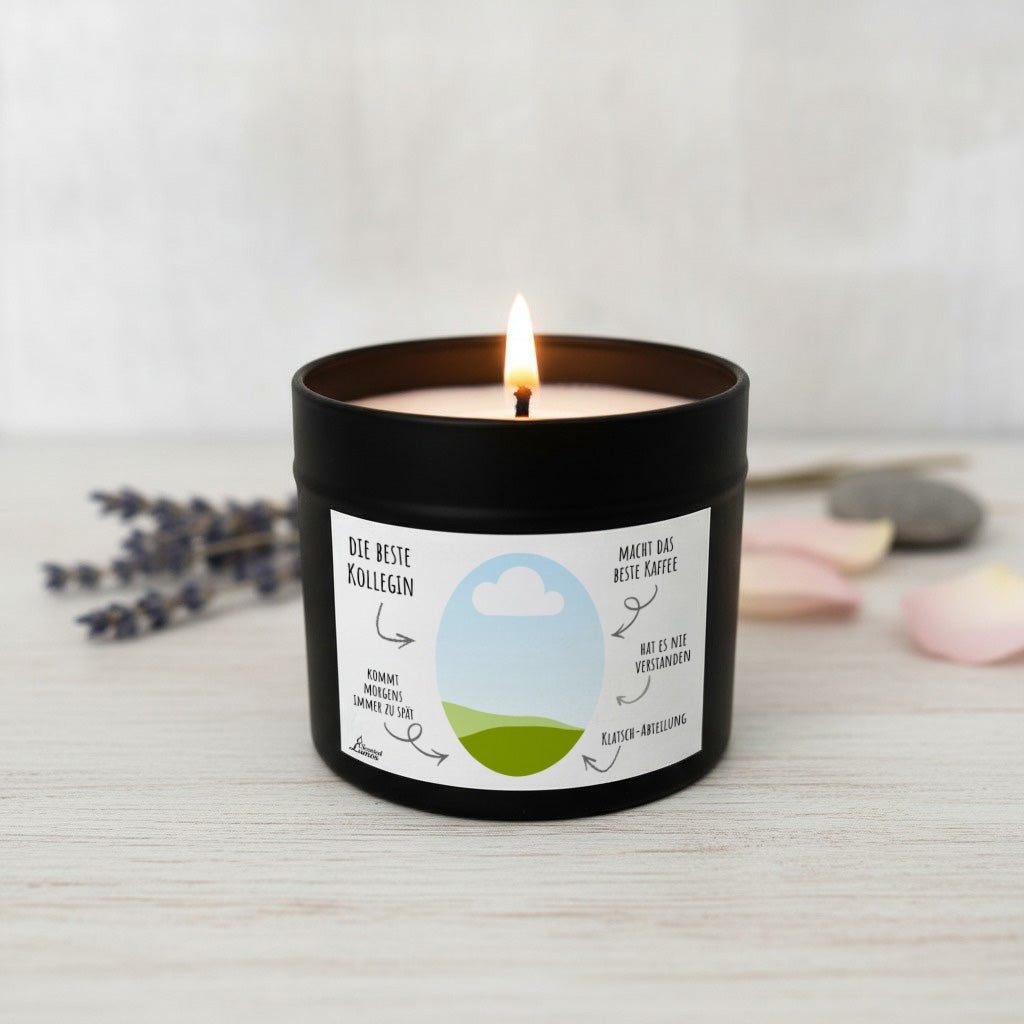 Die beste Kollegin – Diese lustige Duftkerze sagt mehr als 1000 Worte! Handgegossen aus 100% natürlichem Sojawachs, sorgt sie für eine saubere Verbrennung und 40+ Std. Brenndauer. Sie kommt geschenkfertig verpackt zu dir und ist auf Wunsch personalisierbar. Die ideale Geschenkidee für die Lieblingskollegin, die Humor und tollen Duft lieben.