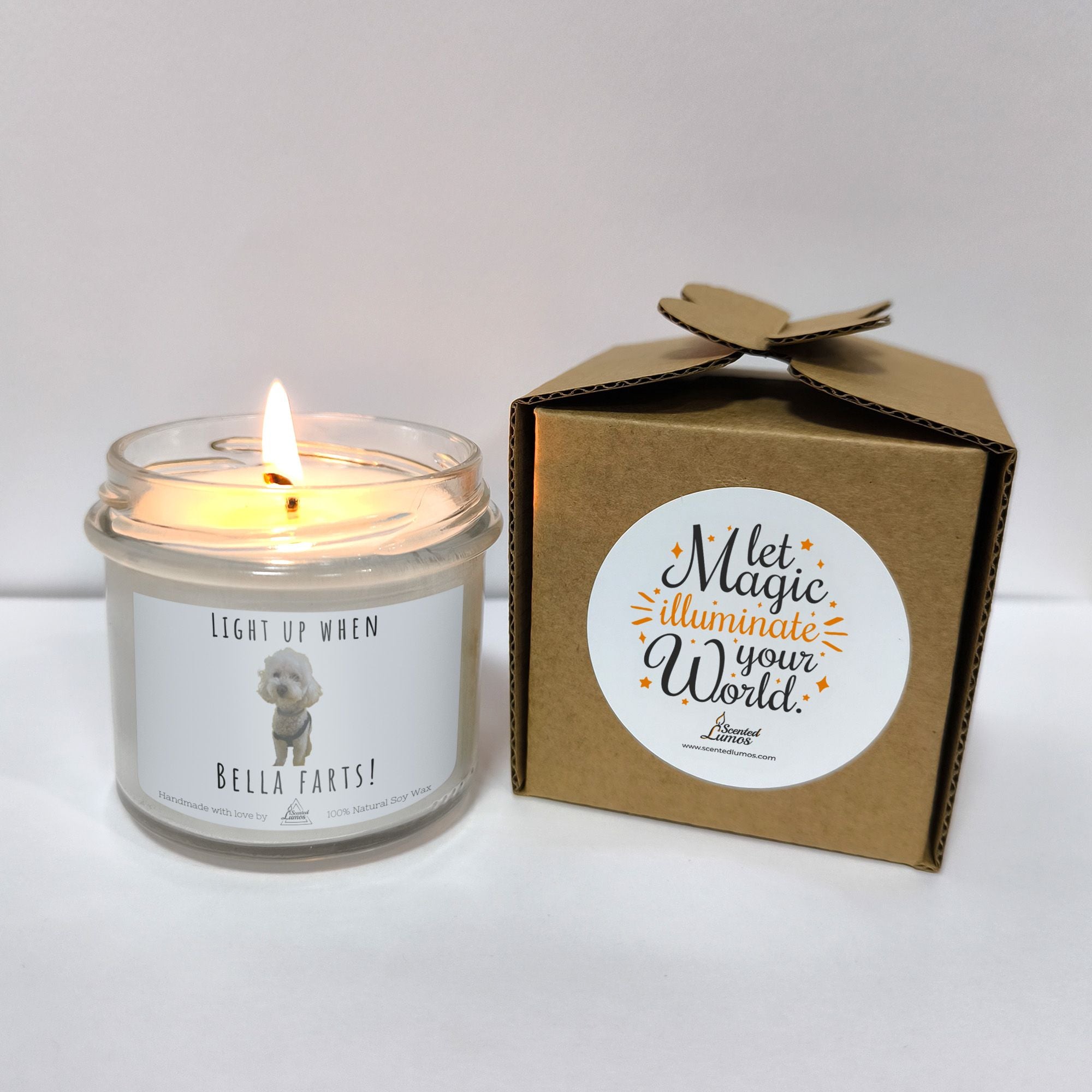 Wir stellen eine lustige Kerze vor, ein Geschenk für Freunde, Familie, Kollegen und alle, die ein geliebtes Haustier zu Hause haben! Diese Kerze wird mit einem coolen, personalisierten Design ein Lächeln ins Gesicht zaubern: