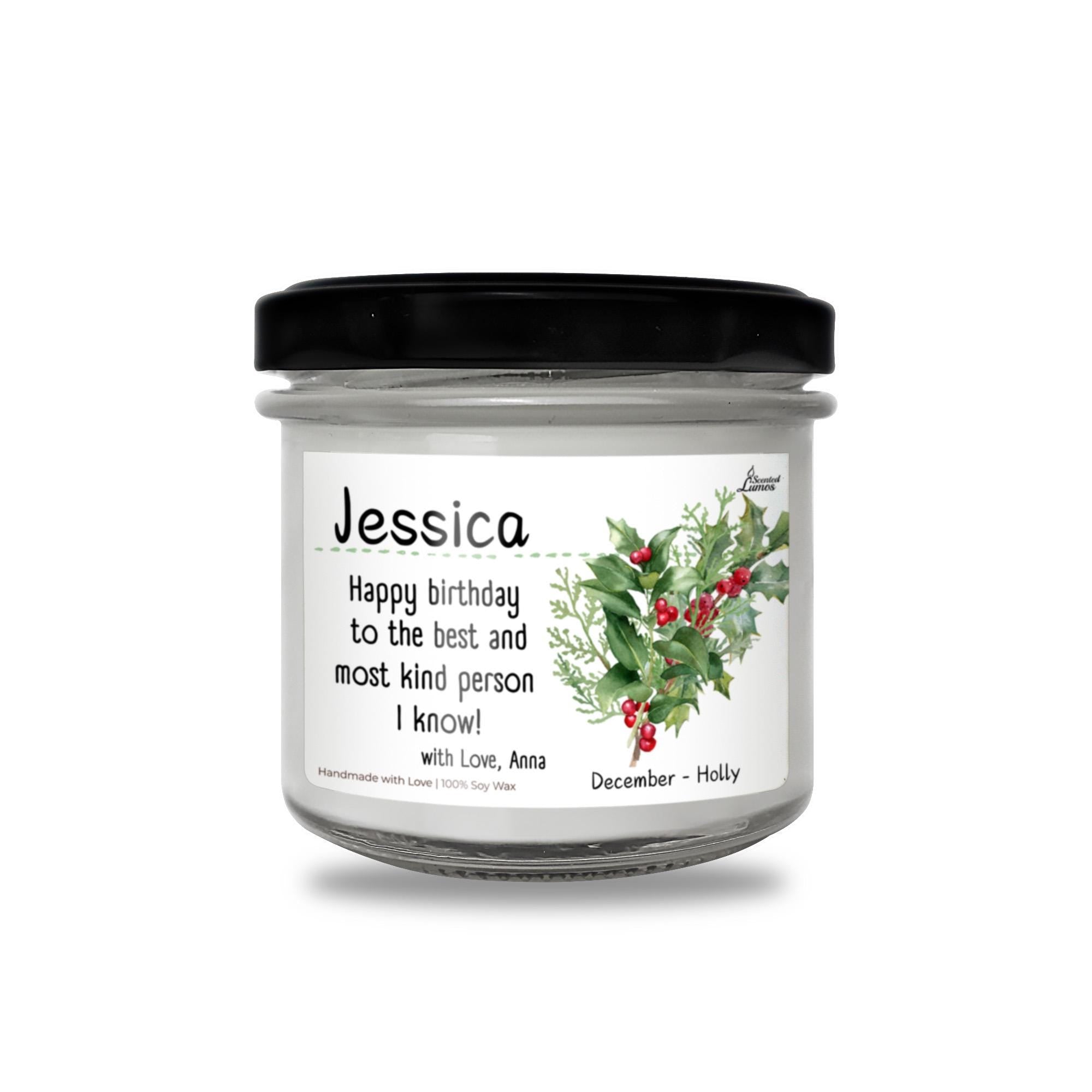 Wir stellen Ihnen eine einzigartige Kerze vor, ein Geschenk für Freunde, Familie und Kollegen, mit einem coolen Design: Blume zum Geburtsmonat Dezember – Holly mit einer individuellen Geburtstagsbotschaft, perfekt zum Feiern eines Dezember-Geburtstages.