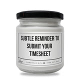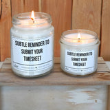Subtle reminder to submit your timesheet Scented Soy Candle