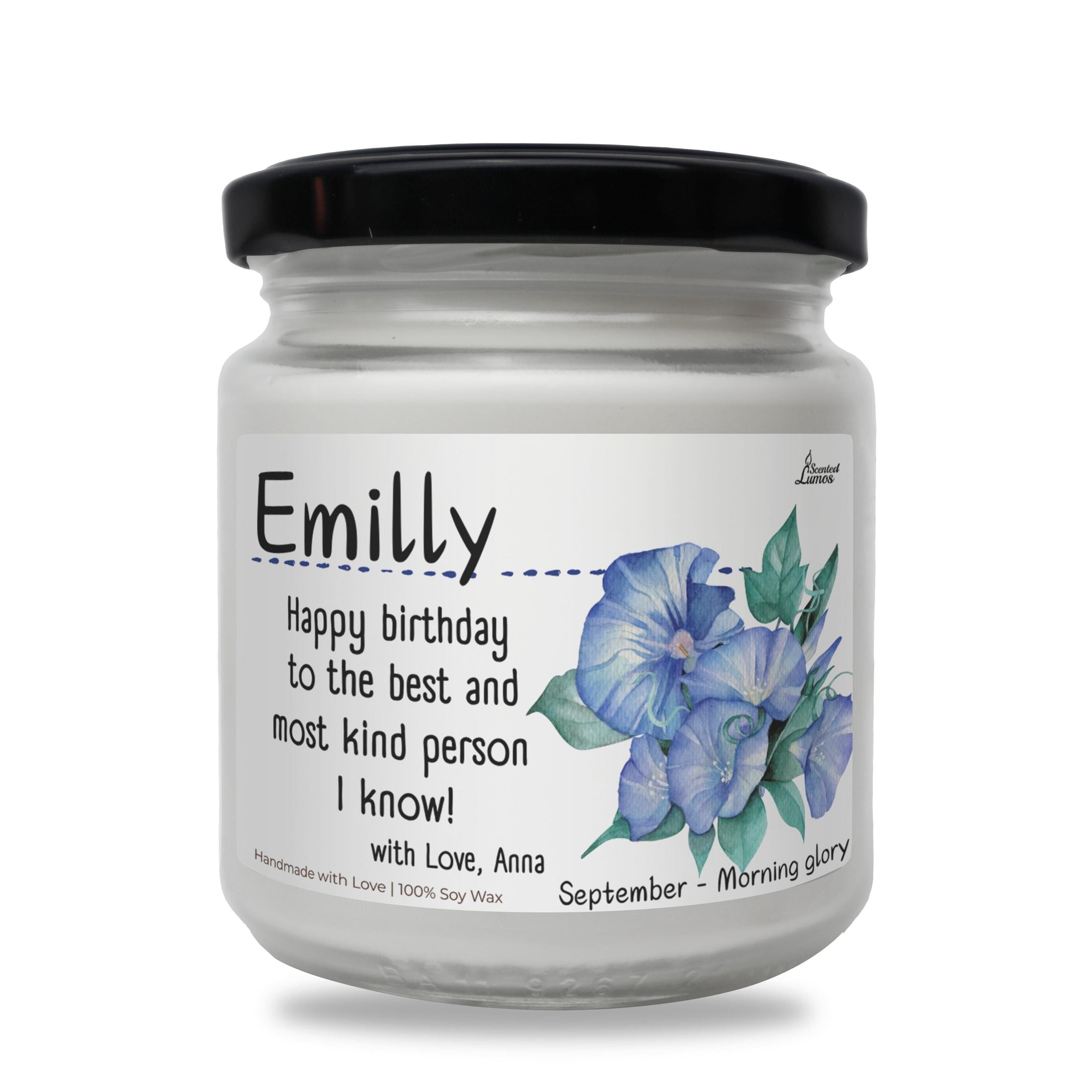 Wir stellen Ihnen eine einzigartige Kerze vor, ein Geschenk für Freunde, Familie und Kollegen, mit einem coolen Design: Blume im Geburtsmonat September – Winde mit einer individuellen Geburtstagsbotschaft, perfekt zum Feiern eines September-Geburtstages.